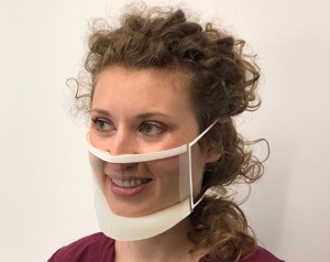 - Volledig transparant mondmasker, zie de persoon en niet het masker